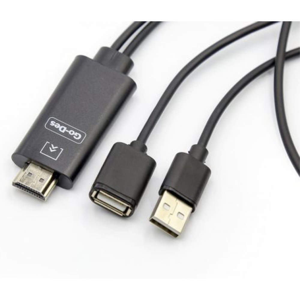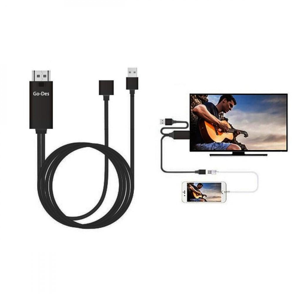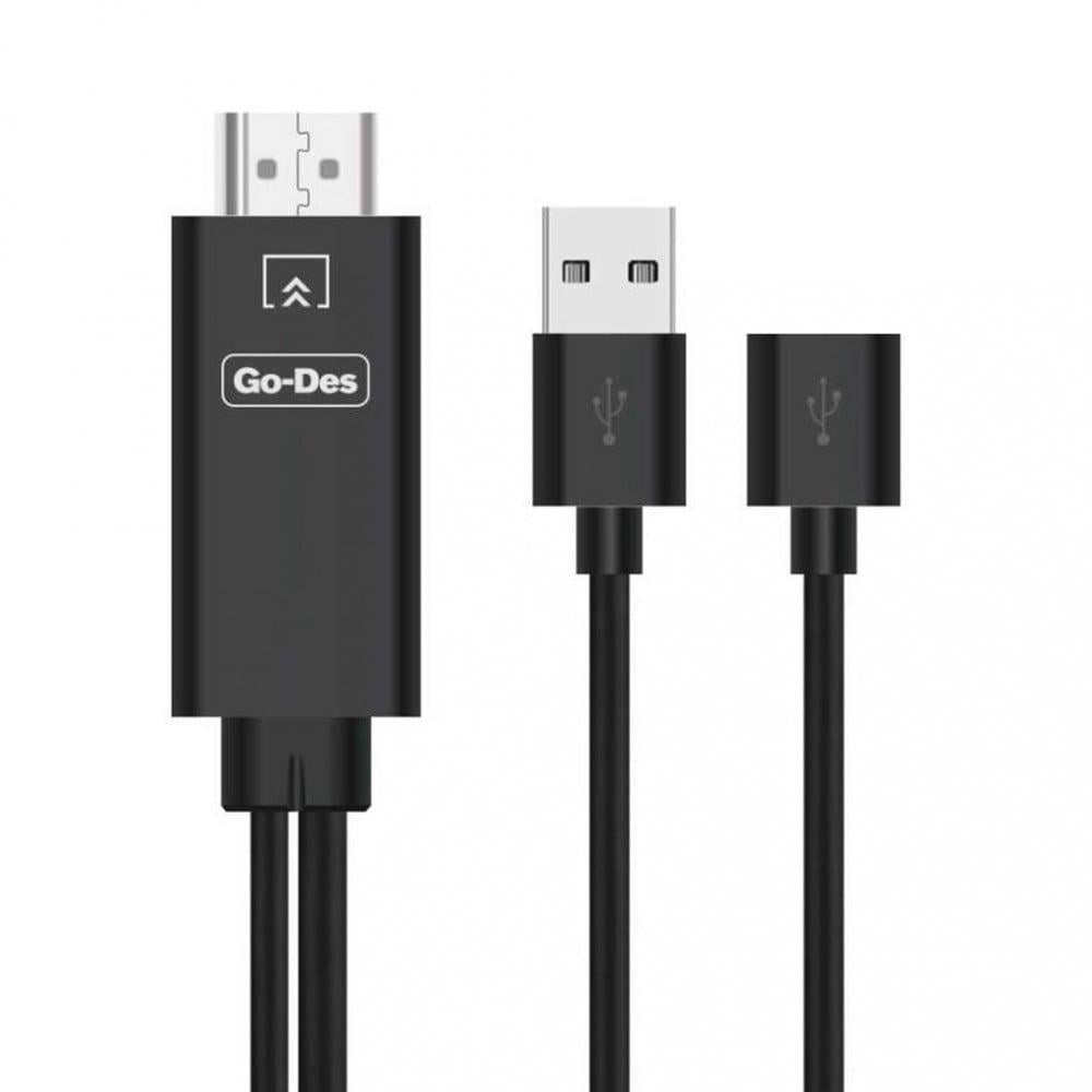 هذا المنتج هو كابل Go-Des 3 في 1 من HDMI إلى مآخذ متعددة (مثل Lightning و Micro-USB و Type-C).